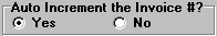 Left-click the appropriate radio button to choose whether or not you want the system to automatically increment the Invoice Number when you're entering invoices.