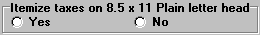 This applies to the "8.5 x 11 Plain paper letter head" invoice only. If you select "Yes", individual taxes will show for each line item on the invoice as well as a Tax Total at the bottom. If you select "No", only the Tax Total will show.