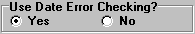 Left-click the appropriate radio button to choose whether or not you want the system to check the dates associated with any invoice batch. If you check "Yes", the system will make sure that the Default Invoice/Ticket Date is within the Period selected for the batch. If you check "No", this check will not be done. However, it is strongly suggested that you leave Date Error Checking turned ON. If you are using the General Ledger part of the system, you MUST have this turned on.