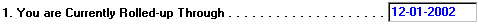 6. The system will automatically display the date you are currently rolled up through. This is the roll-up date (which is typically two months ago) that you used the last time you ran statements (which is typically one month ago). Like this: