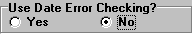 However, it is strongly recommended that you leave Date Error Checking turned ON (that is, check the "Yes" radio button) to insure that the dates associated with your information are kept in sync. If you're using the General Ledger part of the system, you MUST have this turned on.