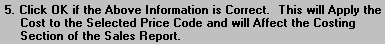 6. Complete the following five steps to set a cost for a given Price Code for a selected period of time.