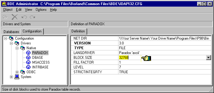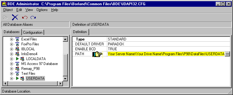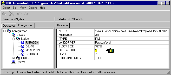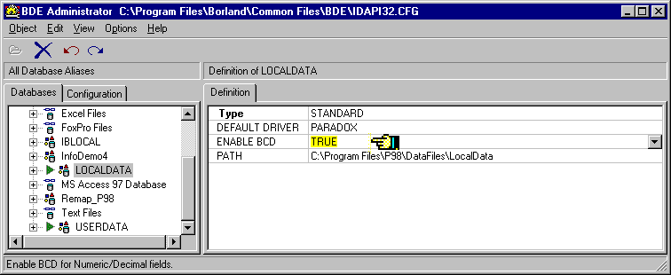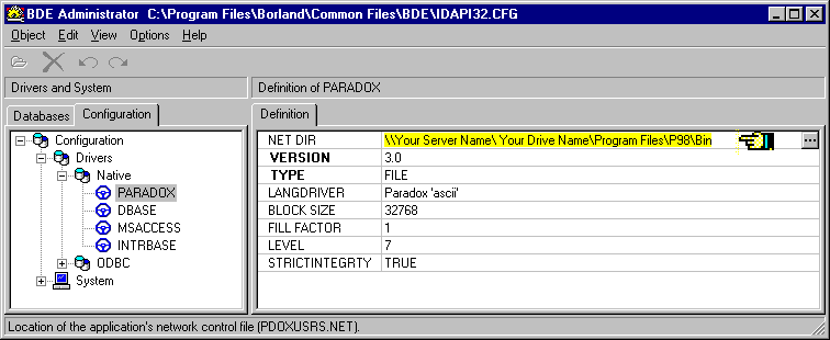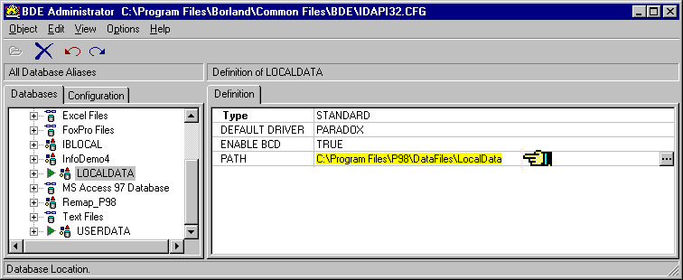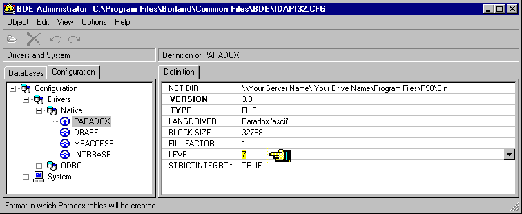 The following BDE Administrator settings need to be made. To get to the BDE Administrator, do the following: