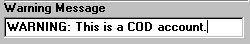 Example: If the Customer is C.O.D you could enter a note to this effect in the Warning Message text box so that you can make sure that a payment for the delivery accompanied the ticket.