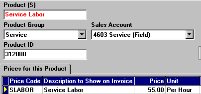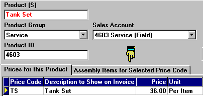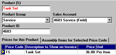 Note: After the "Parts" prices and "Labor" prices have been set up and assigned to the "Tank Set" product prices, they will automatically be included each time a Service Order or invoice is entered for a Tank Set. It will look like this: